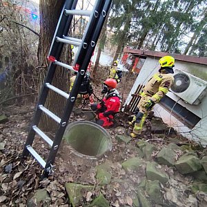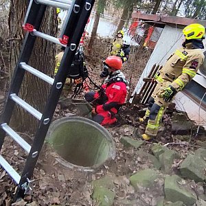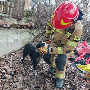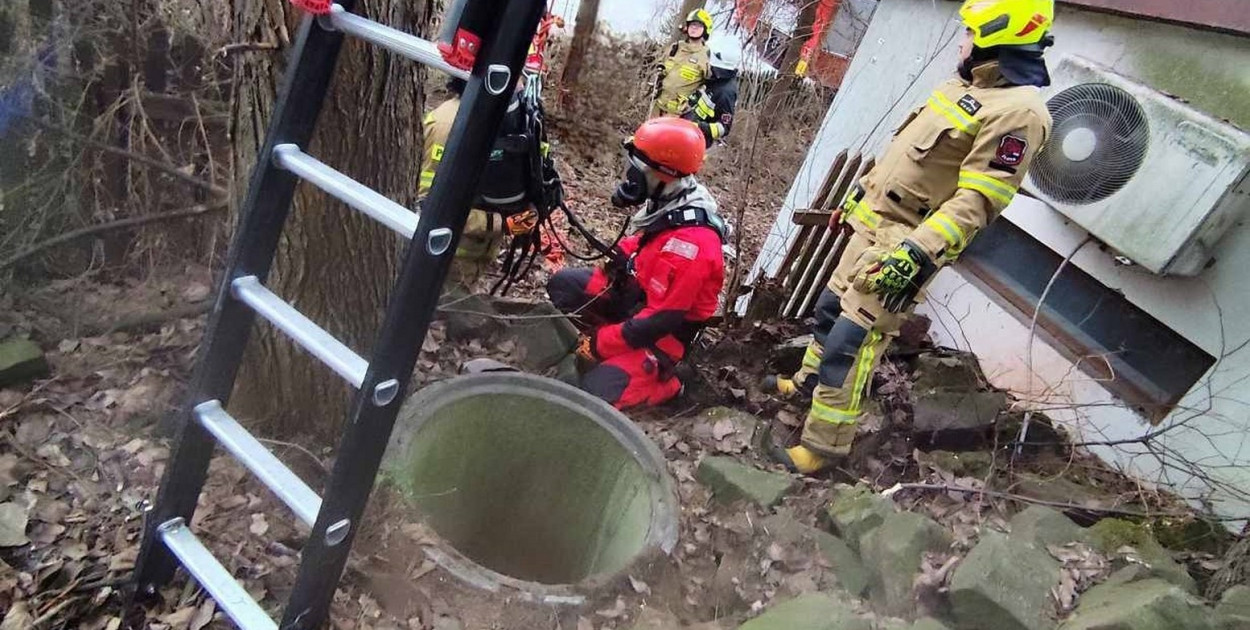 Do zdarzenia doszło ok. godz. 9. Okazało się, że pies uwięziony jest na głębokości ok. 7 metrów.