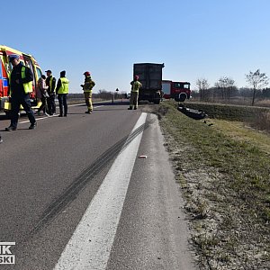 Peugeot wpadając do rowu dodatkowo dachował. Jego kierowca po wydostaniu z auta, został przewieziony do szpitala na badania. W zdarzeniu, zakwalifikowanym przez policję jako kolizja, nie ucierpiała ani kierująca autem KIA, ani kierowca ciężarówki.