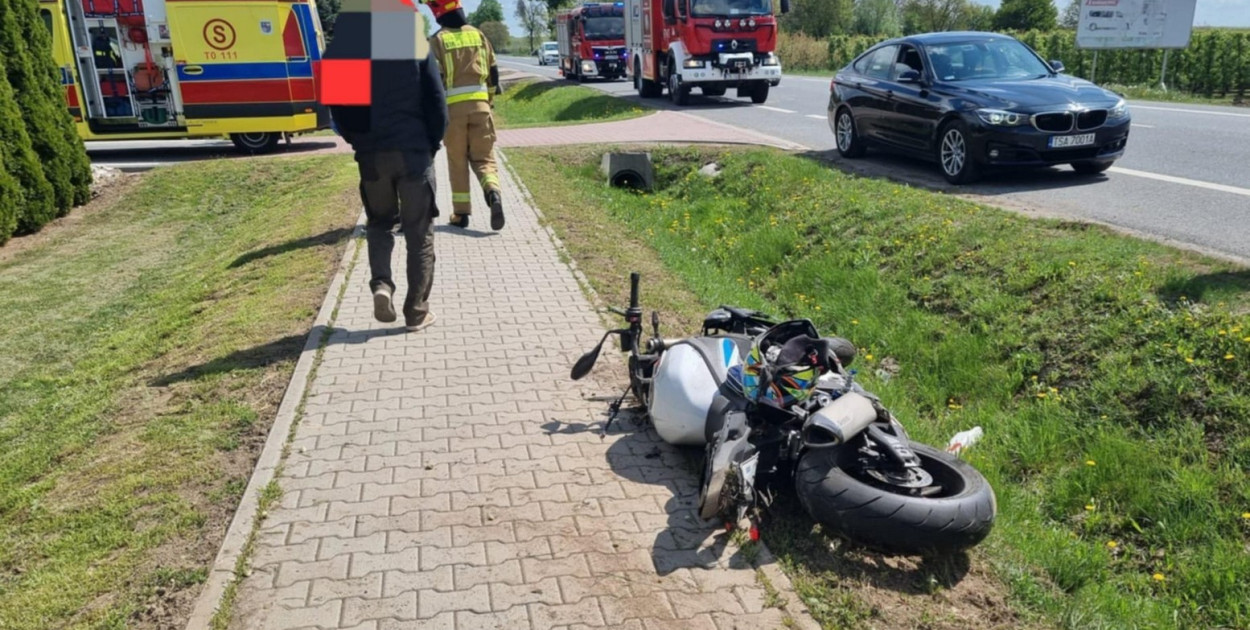 32-letni kierowca motocykla został przetransportowany do szpitala.