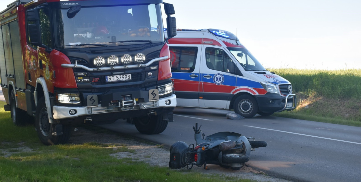 Na miejsce wezwano policję, dwa zastępy straży pożarnej i zespół ratownictwa medycznego, który udzieliła pomocy kierowcy skutera. 50-latek został zabrany do szpitala.