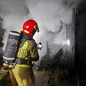 – Nasze działania polegały na zabezpieczeniu i oświetleniu terenu działań, a następnie podaniu jednego prądu wody w natarciu na ognisko pożaru - mówi Daniel Gil.