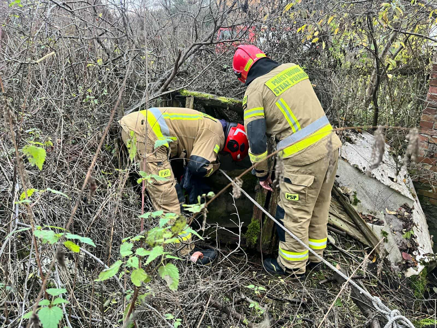 Strażacy stanęli przed trudnym zadaniem, bo ze względu na nieznany stan techniczny studni, spuszczenie w głąb ratownika nie wchodziło w grę.
