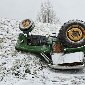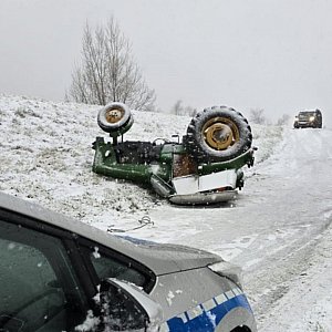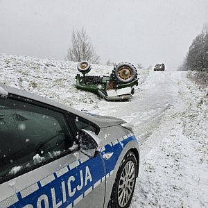 Jak informuje st. asp. Joanna Szczepaniak, oficer prasowa staszowskiej policji, przed godziną 9 w piątek, 67-latek kierujący ciągnikiem rolniczym marki Ursus z przyczepą wypełnioną drewnem, jadąc drogą wzdłuż wału z miejscowości Nakol do Lipnika, zjeżdżając ze wzniesienia, na śliskiej nawierzchni stracił panowanie nad maszyną.