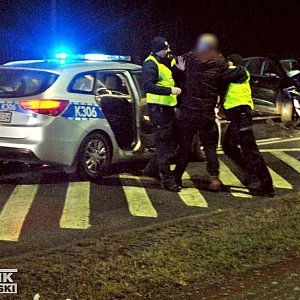 Przybyli na miejsce policjanci stwierdzili, że kierujący Audi mężczyzna jest pod wpływem alkoholu. Był agresywny w stosunku do funkcjonariuszy, odmawiał stosowania się do poleceń, a w pewnym momencie usiłował uciec z radiowozu. Doszło do szamotaniny z policjantami.