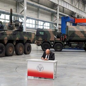 W najnowszej hali produkcyjnej HSW, przeznaczonej m.in. do wykonywania - na najnowocześniejszej w Europie zrobotyzowanej linii spawalniczej i przy wykorzystanie największej w polskim przemyśle zbrojeniowym frezarki bramowej - pancernych podwozi gąsienicowych dla samobieżnej haubicy "Krab" (a niebawem także także Nowego Pływającego BWP "Borsuk") podpisano kolejną ważną dla spółki i MON umowę. Opiewa ona na dostawę do 2020 r. 24 Artyleryjskich Wozów Amunicyjnych (AWA), które uzupełnią wyposażenie Kompanijnych Modułów Ogniowych samobieżnego moździerza automatycznego M120K "Rak" kal. 120 mm.
