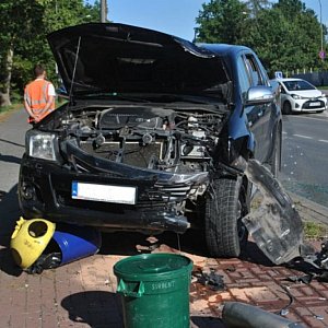 Do wypadku drogowego doszło w Tarnobrzegu, na Wisłostradzie, na wysokości cmentarza parafialnego. Z pierwszych ustaleń policji wynika, że kierowca toyoty hilux nie wyhamował, uderzył w stojącego citroena, następnie "skosił" latarnię i wjechał na chodnik, zatrzymując się na koszu na śmieci.