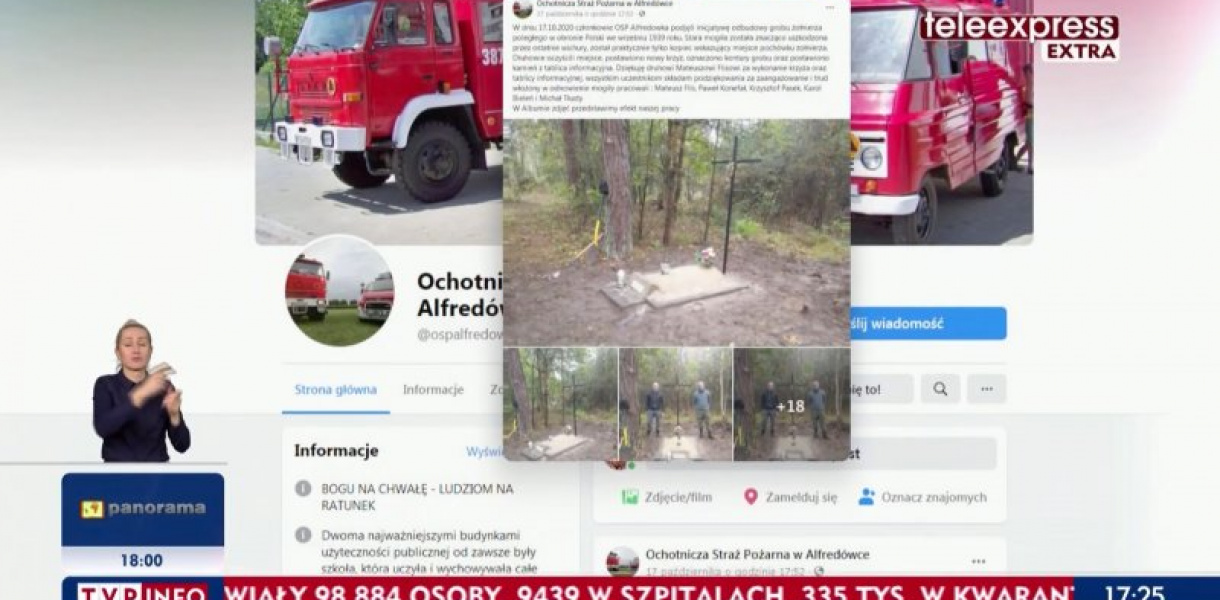 Strażacy z Ochotniczej Straży Pożarnej w Alfredówce (gmina Nowa Dęba) w ostatni weekend odnowili grób Polskiego Żołnierza, poległego w 1939 roku. Ich godny pochwały czyn znalazł się w materiale Teleexpresu Extra.