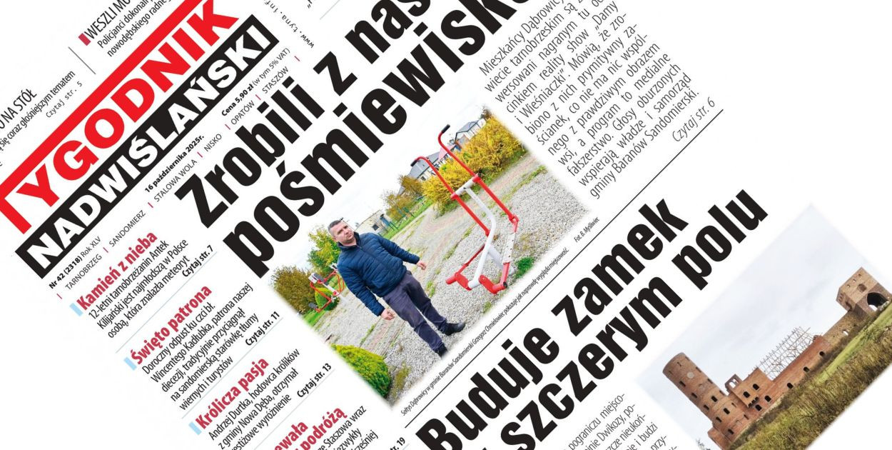 Od 16 października w sprzedaży jest nowe wydanie "Tygodnika Nadwiślańskiego" (nr 42/2025). Na pierwszej stronie piszemy o tym, że mieszkańcy Dąbrowicy w powiecie tarnobrzeskim są zbulwersowani nagranym tu odcinkiem reality show "Damy i Wieśniaczki". Mówią, że zrobiono z nich prymitywny zaścianek, co nie ma nic wspólnego z prawdziwym obrazem wsi, a program to medialne fałszerstwo. Znajdziecie również artykuł o tym, że pod Sandomierzem, na pograniczu miejscowości Słupcza i Czermin w gminie Dwikozy, powstaje... zamek. Budowla, choć jeszcze nieukończona, już teraz robi ogromne wrażenie i budzi powszechne zainteresowanie.