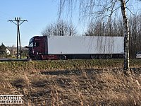 Ciężarówka przewożąca skrzynki z jabłkami wpadła w poślizg i przewróciła się na bok na drodze krajowej nr 74 w miejscowości Dębno (powiat opatowski).