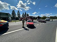 Zderzenie dwóch aut na ulicy Langiewicza w Staszowie. Kierowcę jednego z nich trzeba było uwolnić przy użyciu narzędzi hydraulicznych.