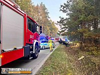 Cztery zastępy straży pożarnej uczestniczyły w akcji gaszenia "elektryka" marki BMW. Auto zapaliło się w Kurozwękach pod Staszowem.