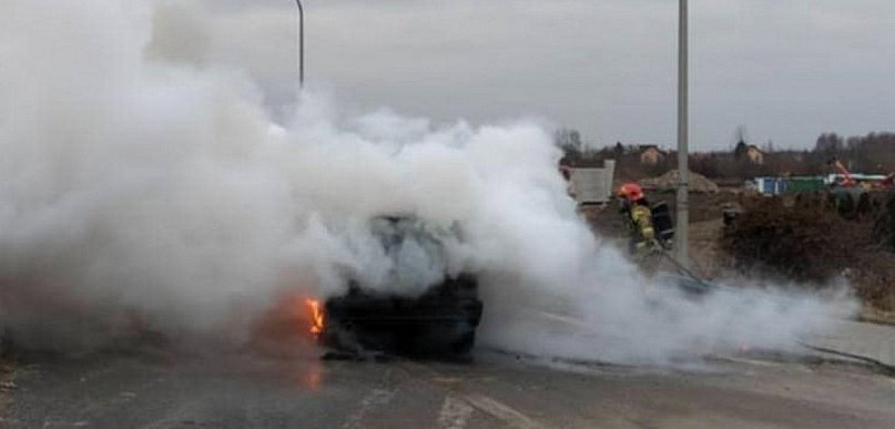 Auto zapaliło się na drodze w pobliżu sandomierskiego mostu [ZDJĘCIA]