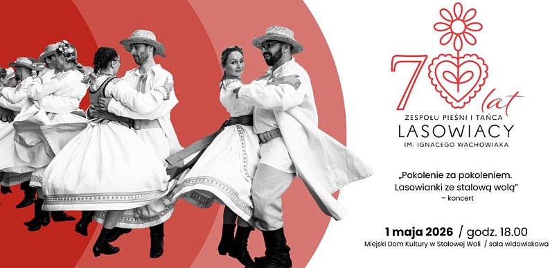 1 maja o godz. 18.00 w Miejskim Domu Kultury w Stalowej Woli odbędzie się koncert inaugurujący jubileusz Zespołu Pieśni i Tańca Lasowiacy im. Ignacego Wachowiaka.