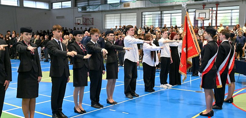 Uczniowie, którzy w roku szkolnym 2026/2027 rozpoczęli naukę w tarnobrzeskiej "Prymasówce", złożyli uroczyste ślubowanie. Wyróżniała się grupa stewardes i stewardów.