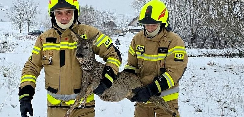 Nietypową interwencją popisali się druhowie z Ochotniczej Straży Pożarnej w Skopaniu. Mimo trudnych warunków, wyciągnęli z kanału i uratowali młodą sarnę.